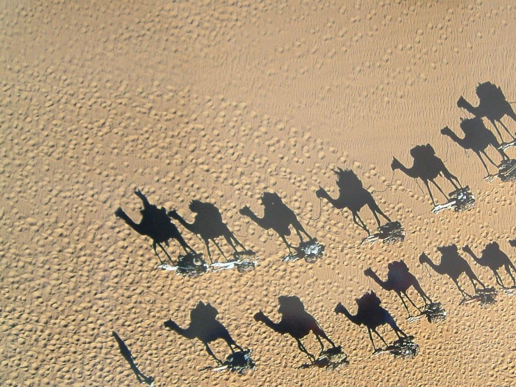 Camels in the desert