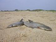 well they arn't dead according to the imformation on the net I found they are called sand sharks and bleed like that, so they are meant to be on sand and in water. So they are not dead.