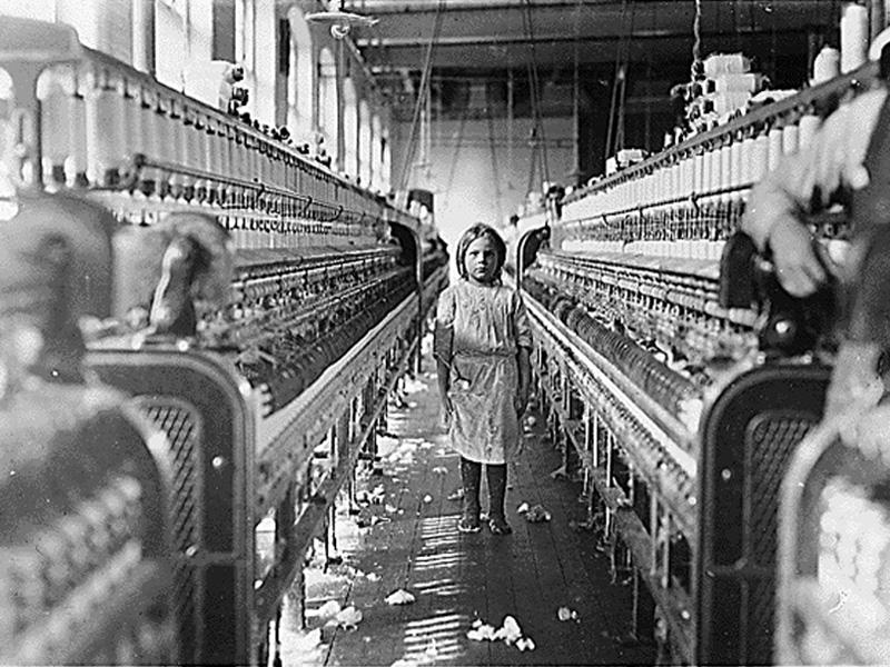 This photo is one by Lewis Hine. He told factory owners that he was coming in to take photos of their magnificent machines while, in truth, he was uncovering the ills of child labor.